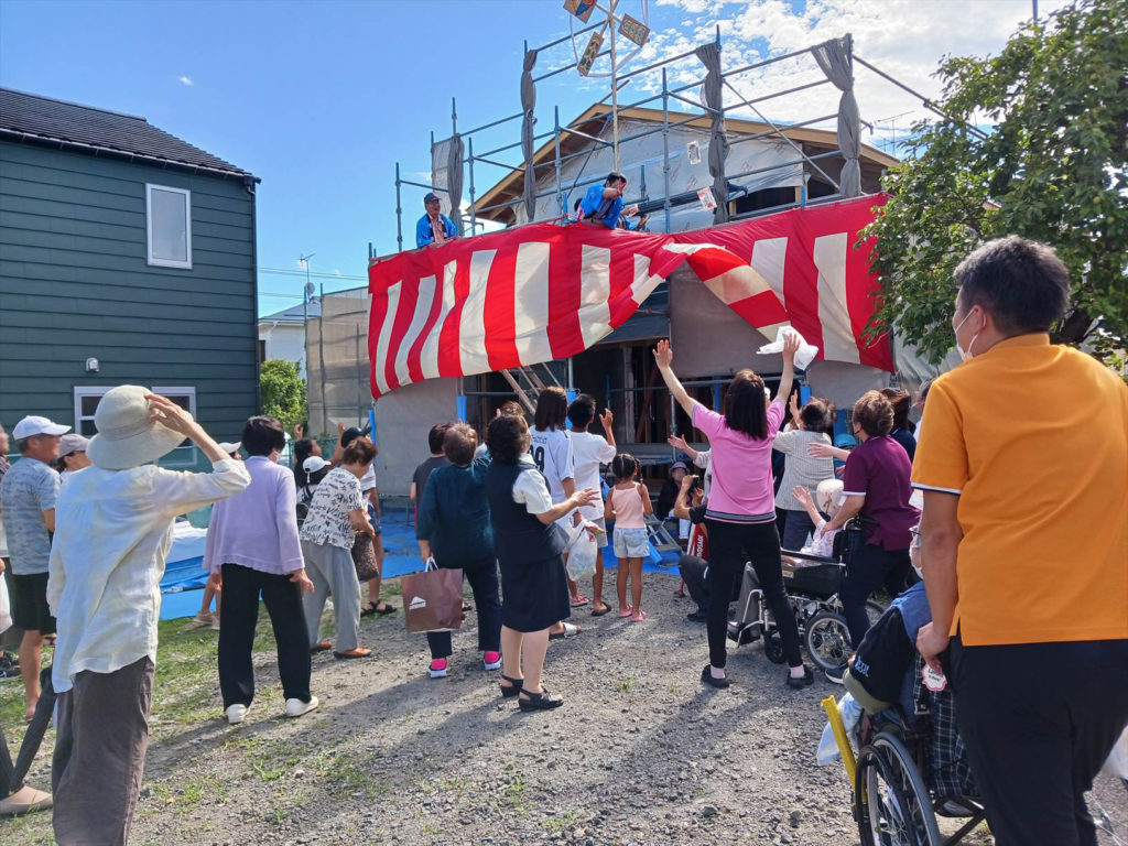 餅まき自体は30分ぐらいであっという間であったが、一生忘れられない時間となったと想う。多くの方々にご協力のお陰であり、最大限の感謝を申し上げたい。本来は施主が主体となって、職人さんたちの安全を祈願する祭であるはずが、樽川技建の皆さんには会場設営から五色旗の意味の解説までお手間をお掛けし、私たちがやりたいことを叶えてくださった。